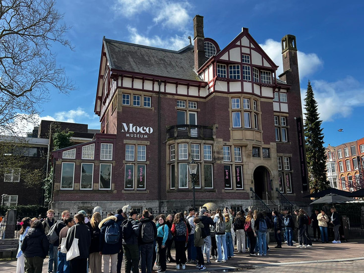 Jeudi 4 avril : aujourd'hui, journée musées, avec ce matin Nemo, le musée des sciences abrité dans un bâtiment à la forme originale. Après le pique-nique du midi, en route pour le Moco, musée dédié à l'art moderne, à l'art contemporain et au Street Art, installé dans une grande et belle villa du début du 20ème siècle.