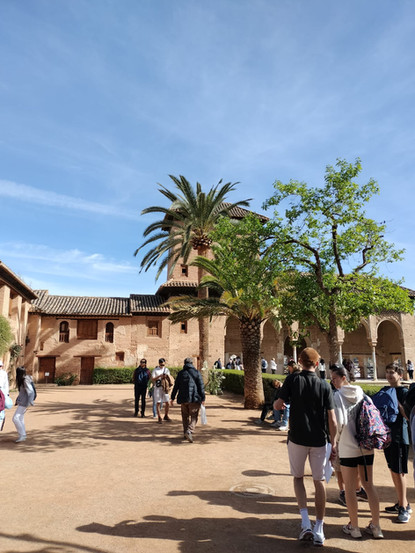 Jeudi 6 avril : impossible de repartir de Grenade sans aller admirer le magnifique palais de l'Alhambra ! Une matinée très riche pour nos élèves ! Après la pause déjeuner, nous avons rejoint des guides au Sacromonte (quartier gitan de Grenade) qui nous ont expliqué le mode de vie de cette communauté dans les grottes sur les hauteurs. Enfin, dernière marche sous 30 degrés (!!!) afin de rejoindre nos chauffeurs. Départ vers la France à 18h30, toutes les bonnes choses ont une fin !